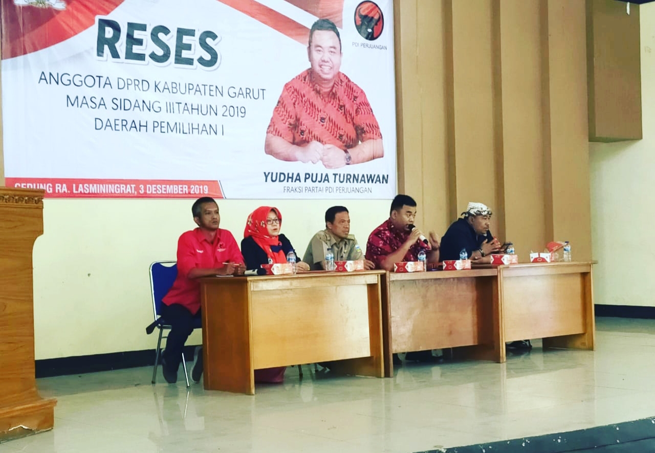 GOSIPGARUT.ID — Anggota Komisi IV Dewan Perwakilan Rakyat Daerah (DPRD) Kabupaten Garut, Yudha Puja Turnawan, menggelar reses masa sidang III dengan para pengurus PAC dan ranting PDI-P di Gedung RA Lasminingrat Jalan Achmad Yani Kecamatan Garut Kota Kabupaten Garut, Selasa (3/12/2019).