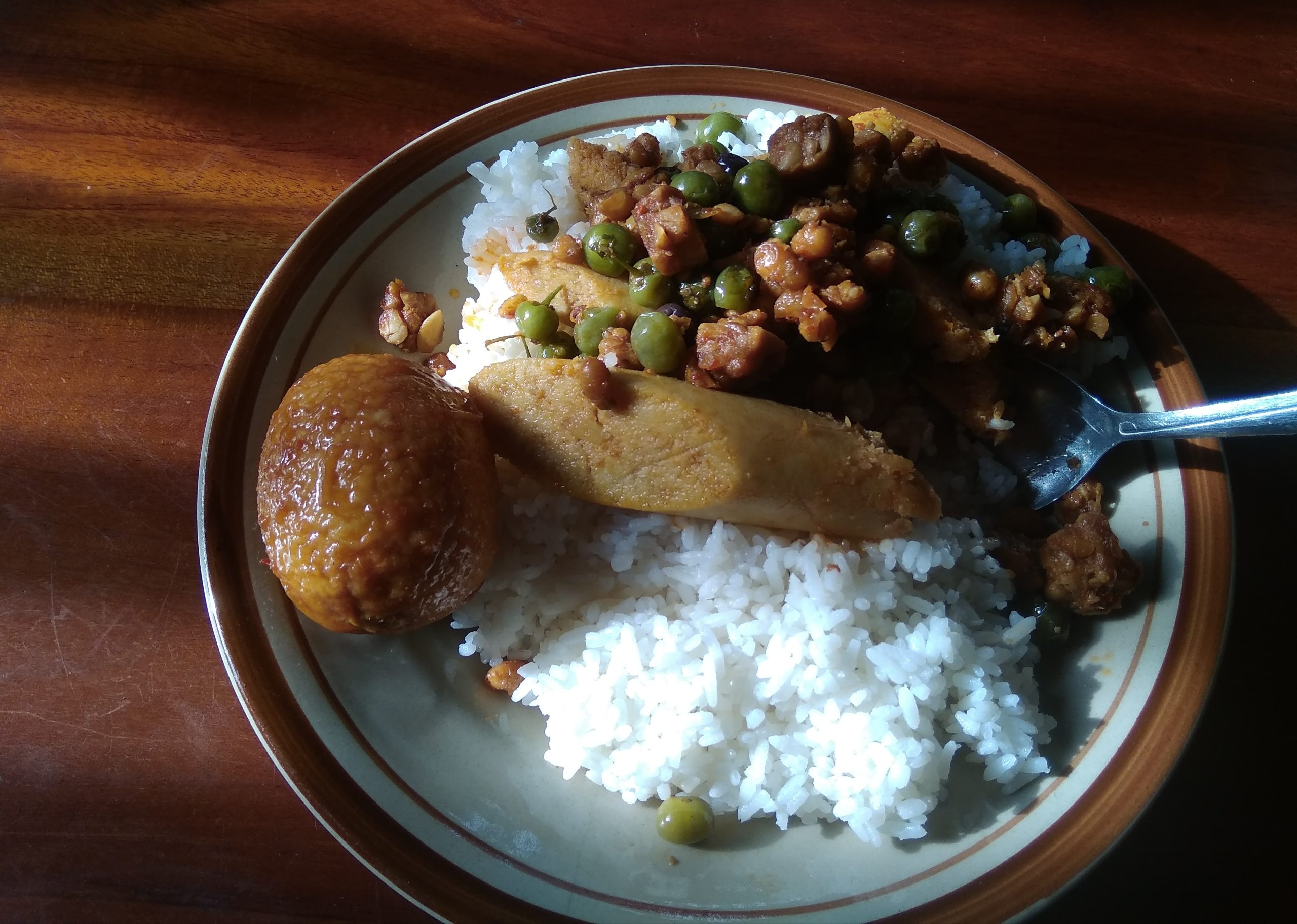 Dari sekian banyak menu makanan yang ada di sana, ingin rasanya mencoba sarapan dengan opor terubuk. Untuk temannya, digandengkan ulukutek leunca dan semur telor. Alhasil, dari ketiga makanan itu, rasanya hanya opor terubuk yang paling maknyos di lidah. (Galih Pawarti)