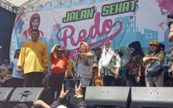 Siti Hardijanti hadir di atas panggung menemui para peserta jalan sehat yang didominasi kaum perempuan di tengah-tengah teriknya matahari Lapangan Ciateul. Acara yang dipandu aktor ternama sekaligus calon anggota DPR RI dari Partai Berkarya Donny Kesuma itu menambah acara makin meriah, dan sesekali peserta berteriak untuk segera mengundi hadiah jalan sehat.