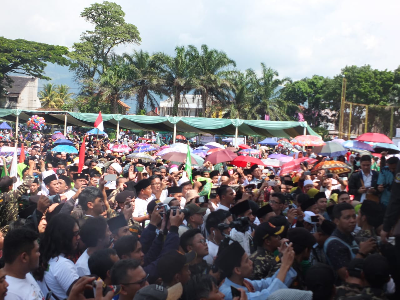 GOSIPGARUT.ID — Ribuan massa Nahdlatul Ulama (NU) dan relawan pemenangan Jokowi – Ma’ruf Amin tumplek penuhi Lapangan Merdeka Kerkoff, Sabtu (09/02/2019). Dengan meriah mereka merayakan Harlah NU ke-933 dan Muslimat NU ke-73 di Kabupaten Garut.