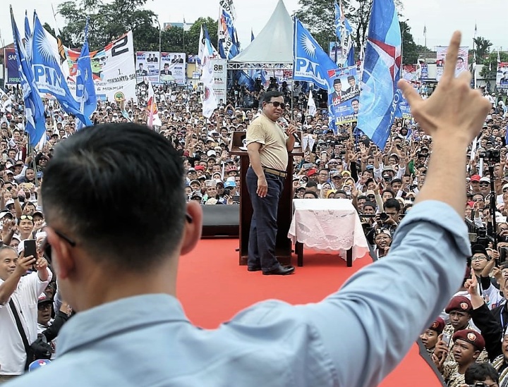 Tak lupa, Ketua Umum Partai Gerindra juga menyambut para petinggi partai Koalisi Indonesia Menang yang turut hadir di Stadion Persib Sidoliq. “Saya bisa berdiri di sini karena saya diusung dan didukung oleh partai-partai penting. Karena mereka itulah, saya bisa berdiri di sini,” katanya.