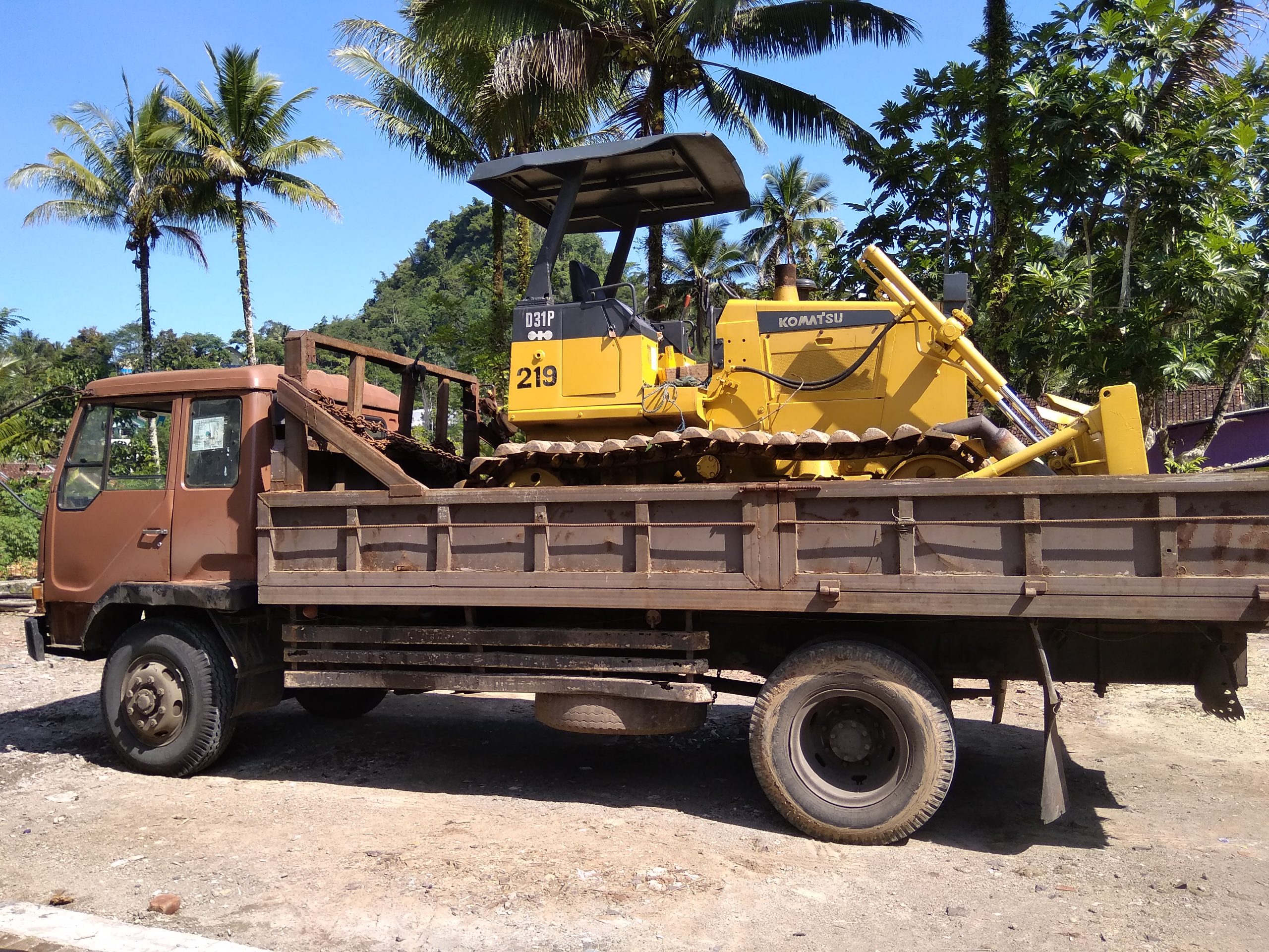GOSIPGARUT.ID — Sebuah mobil truk fuso D 8766 BC yang mengangkut alat berat, tiba-tiba berhenti di depan Bank BJB Kantor Kas Cisewu dan langsung diparkirkan di halaman bank plat merah itu, pada Sabtu pagi (30/3/2019). Padahal truk fuso tersebut dalam keadaan tergesa-gesa untuk segera menurunkan muatannya, yaitu alat berat yang akan dioperasikan dalam perataan lahan untuk pembangunan pasar wisata di Desa Pamalayan, Kecamatan Cisewu, Kabupaten Garut. Usut punya usut, konon penyebab berhentinya truk fuso itu karena pengemudinya harus mendapatkan izin lewat dulu kepada aparat setempat. (GosipGarut-Online)
