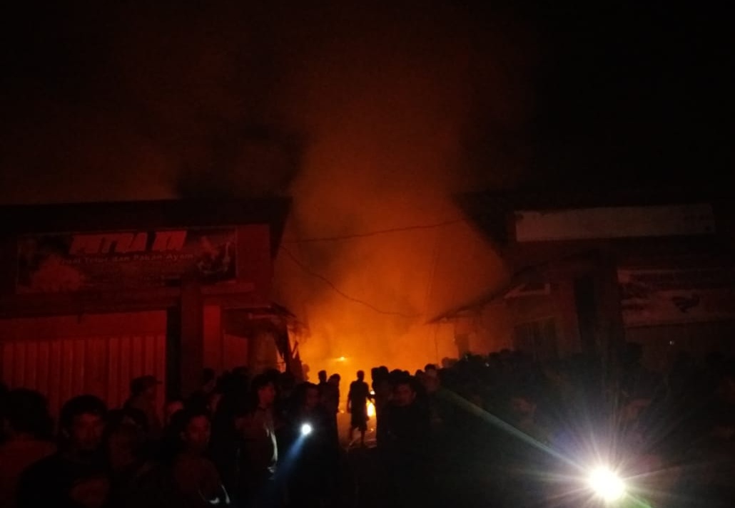 Api melalap lima kios di Pasar Cirapuhan, Kecamatan Selaawi, Kabupaten Garut, Kamis malam (13/6/2019). (Foto: RA Sopyan/GosipGarut)
