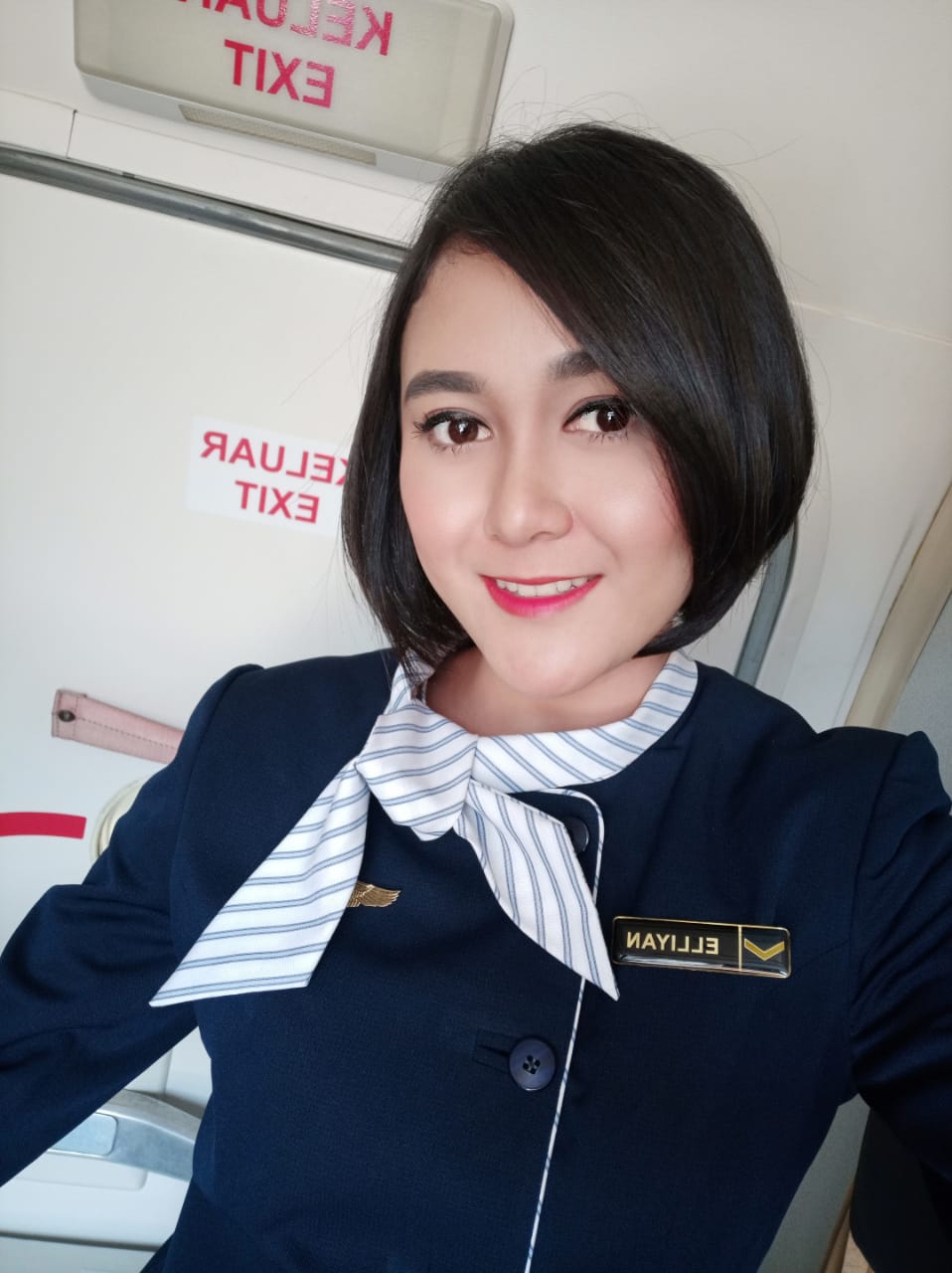 “Nah kebetulan waktu saya semester dua, saya ikut ajang Putri Dirgantara Indonesia yang kebetulan acaranya dilaksanakan di bawah naungan TNI AU. Alhamdulillah masuk 5 peserta terbaik dan memiliki kesempatan direkomendasikan untuk mengikuti seleksi wara pramugari VIP (khusus pejabat TNI dan pejabat negara) dan VVIP (khusus kepresidenan),” tambah Elliyan.