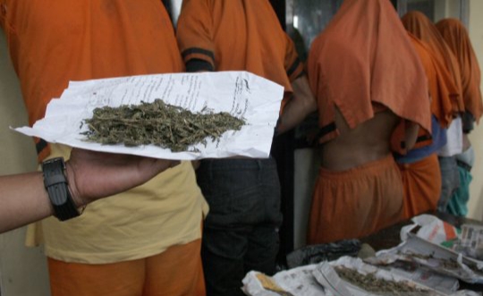Polisi menunjukan tersangka dan barang bukti ganja siap edar di Markas Polres Garut beberapa waktu lalu. (Foto: Antara)