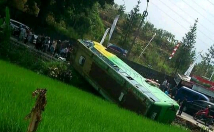 “Saya kaget bus tiba-tiba miring ke kiri dan langsung terjungkal ke dalam sawah di pinggir jalan,” kata Rokib seorang penumpang, Rabu (28/8/2019).