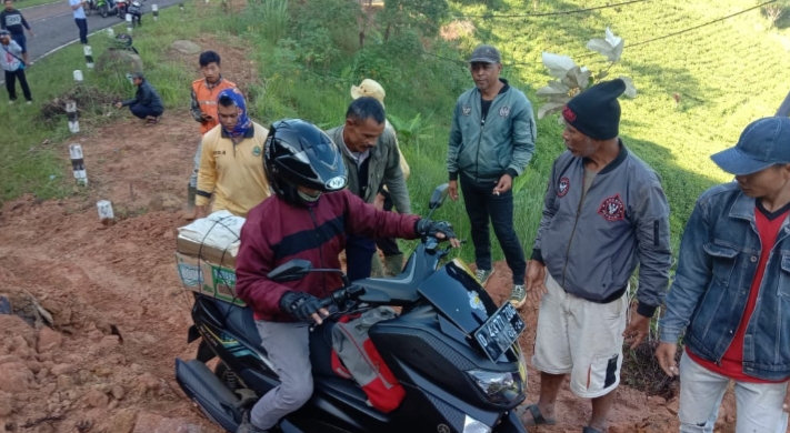 Longsor Terjadi di Talegong: Roda Empat Tak Bisa Lewat, Sepeda Motor Dipaksakan