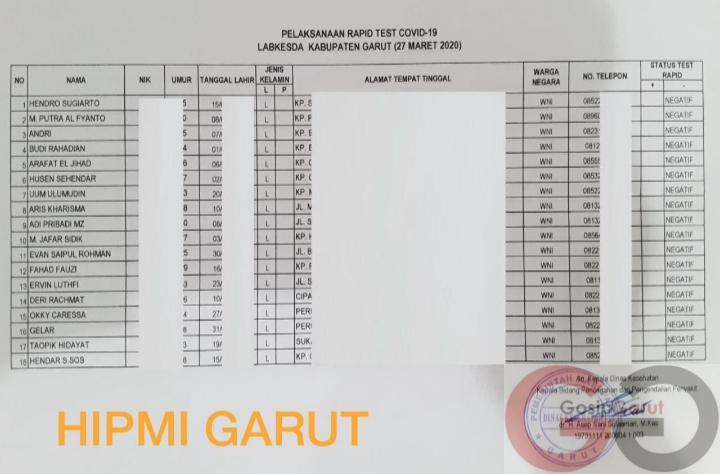 Ia pun memposting surat dari Kepala Bidang Pencegahan dan Pengendalian Penyakit Dinas Kesehatan Garut, Asep Sani Sulaeman, yang menyebutkan ke-18 anggota Hipmi itu negatif Covid-19 setelah dilakukan pemeriksaan oleh Labkesda Garut pada Jum’at (27/3/2020) pagi.