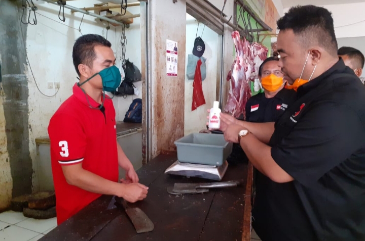 Ada Seorang Warga Positif Covid-19, PDIP Garut Bagikan Hand Sanitizer di Pasar Wanaraja