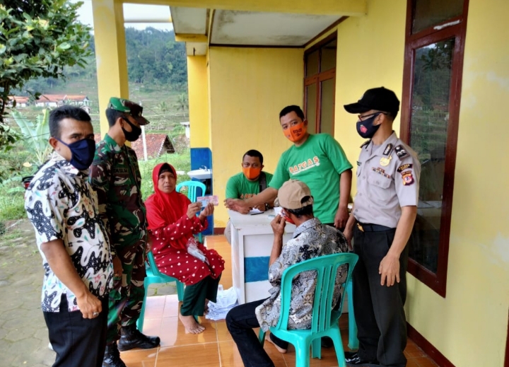 Bantuan diberikan petugas PT Pos di aula Desa Panggalih, Selasa (20/10/2020), disaksikan oleh sejumlah perangkat Desa Panggalih, aparat Koramil 1123, dan Polsek Cisewu.