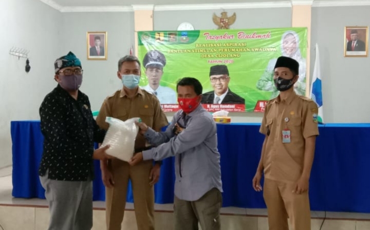 Bantuan diterima langsung Kepala Desa Cijolang, Deden Jaenal Mutaqin di Aula Desa Cijolang.
