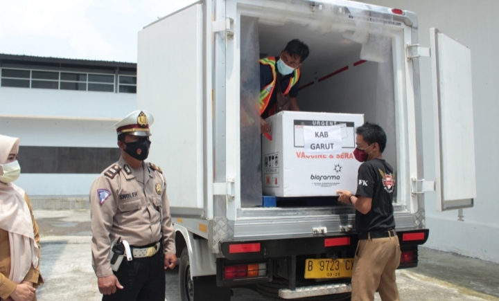 Vakdin tersebut dikirim ke Garut dengan menggunakan kendaraan roda empat jenis box warna hijau putih dengan Nopol B 9723 CXS.