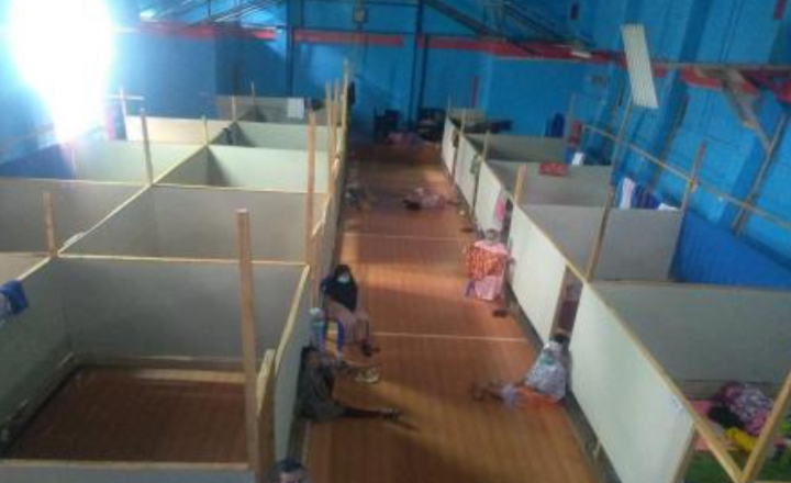 Sejumlah pasien positif Covid-19 di salah satu kampung di Kecamatan Bungbulang, Kabupaten Garut, menjalani isolasi terpusat di GOR desa setempat, Jumat (21/5/2021). (Foto: Dok. Camat Bungbulang)