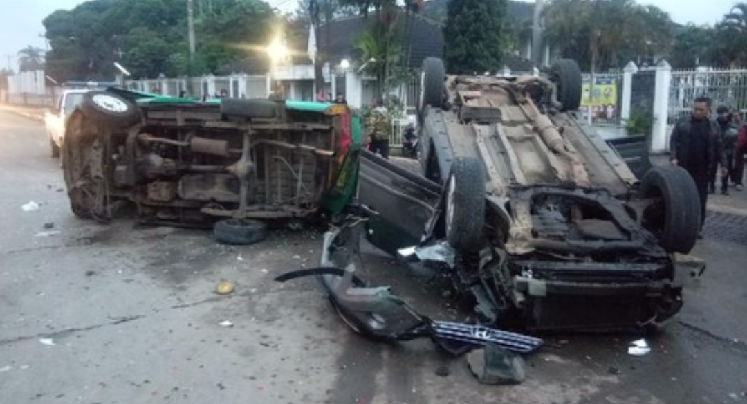 Kendaraan yang terlibat kecelakaan, yakni mobil Honda CR-V bernomor D-1524-WS dan mobil angkot bernomor D-1996-VE. Akibat tabrakan itu, mobil Honda CR-V terbalik, sementara mobil angkot terguling.