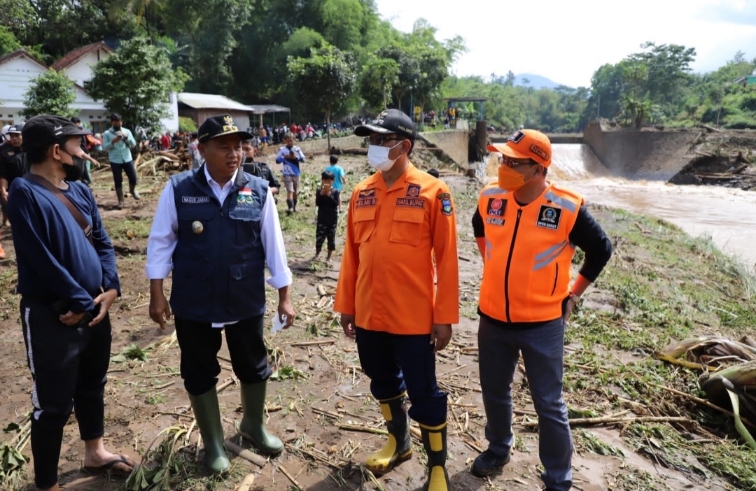 “Tidak ada korban jiwa,” kata Helmi usai meninjau daerah terdampak banjir bandang di Kecamatan Sukawening, Minggu (28/11/2021).