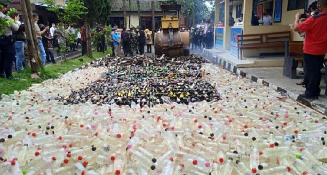 GOSIPGARUT.ID — Ribuan botol miras dan knalpot bising hasil operasi aparat kepolisian di Kabupaten Garut dimusnahkan. Pemusnahan benda ilegal yang dilakukan jelang pelaksanaan bulan suci Ramadan itu menunjukan komitmen pemerintah, dalam memberantas perilaku meresahkan masyarakat selama bulan puasa.