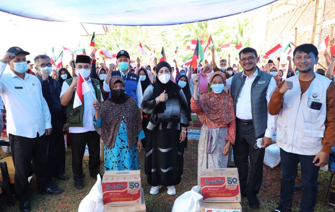 GOSIPGARUT.ID — Warga Kampung Kubangsari, Desa/Kecamatan Peundeuy, Kabupaten Garut, menerima bantuan sembako dari yayasan milik pemerintah negara Kuwait, yakni Yayasan Jami’ah As-Salam, Rabu (6/4/2022). Penyaluran bantuan itu dihadiri oleh Wakil Bupati (Wabup) Helmi Budiman.
