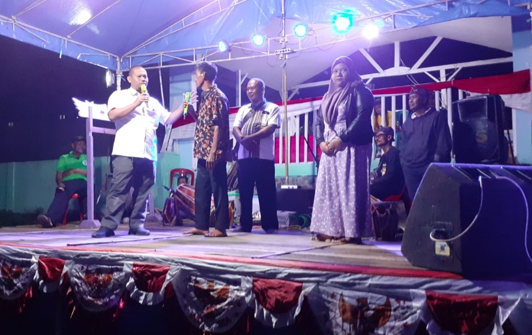 Kades Indralayang Yanyan W Somantri menyambut antuasias kehadiran anggota Fraksi PKS DPRD Garut dalam puncak gebyar budaya memperingati HUT ke-77 RI di Lapang Desa Indralayang.