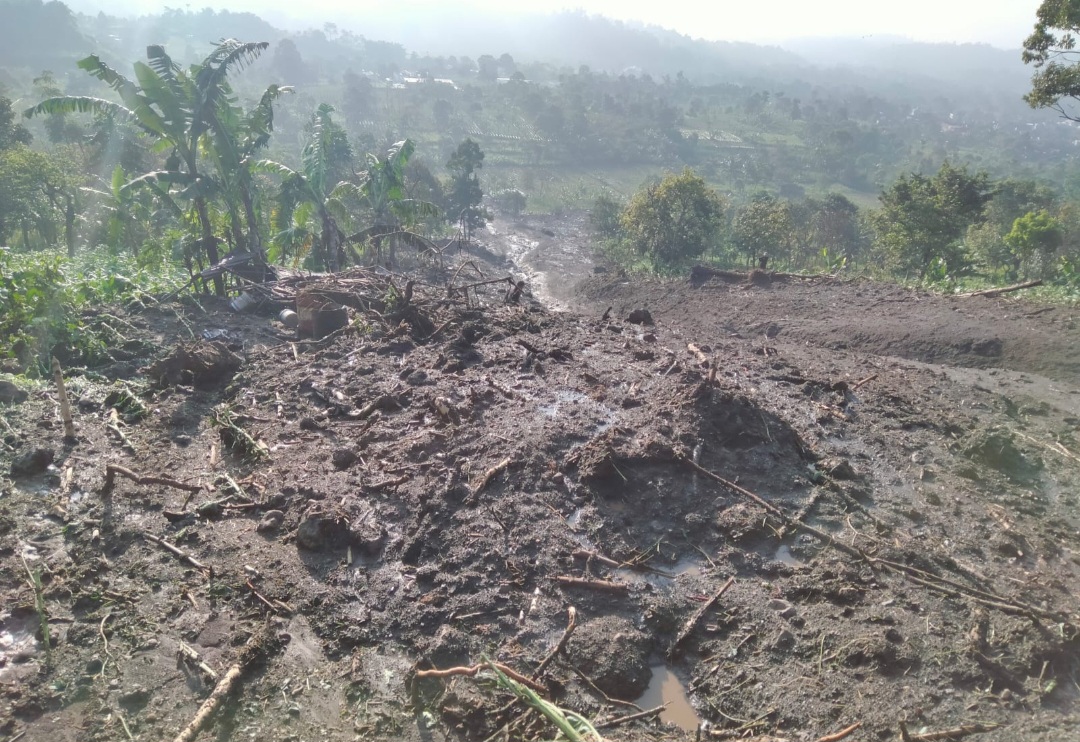GOSIPGARUT.ID — Lahan perkebunan tembakau dan alpukat milik warga Desa Sukaraja, Kecamatan Banyuresmi, Kabupaten Garut, tertimpa longsor pada Selasa 2 Mei 2023. Akibat kejadian tersebut, warga menderita kerugian hingga Rp200 juta.
