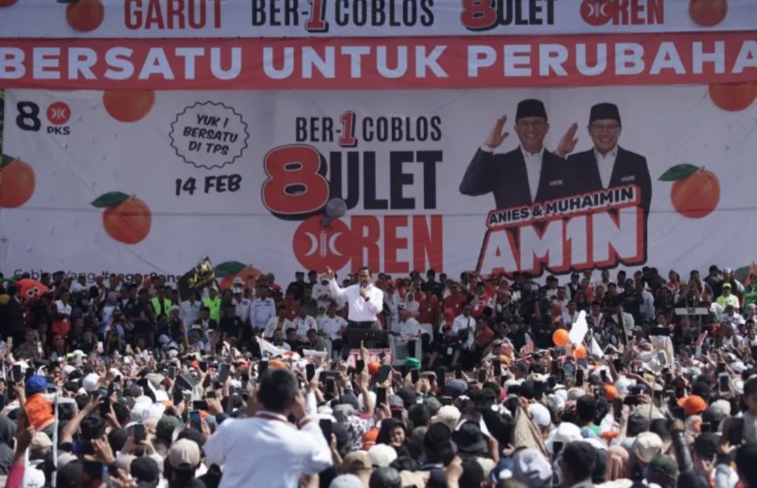 Capres yang diusung Partai Nasdem, PKB, dan PKS menyuarakan ajakan tersebut saat berkampanye di hadapan ribuan relawan dan masyarakat yang berada di Lapangan Jayaraga Garut, Kamis (8/2/2024).