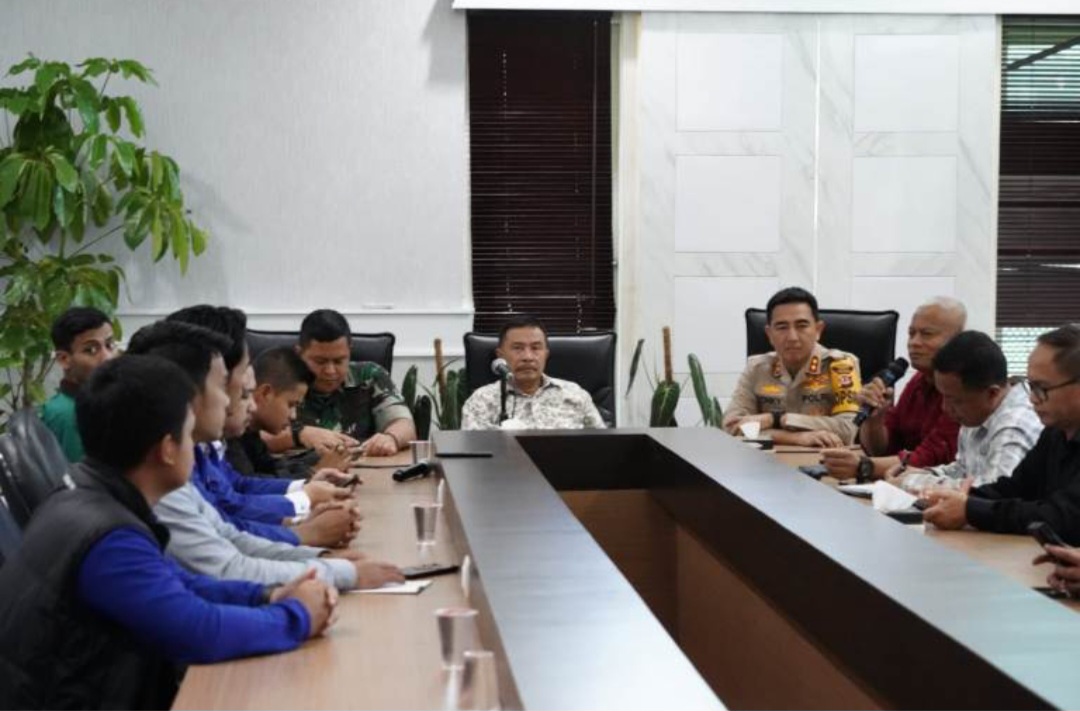 GOSIPGARUT.ID — Penjabat (Pj) Bupati Barnas Adjidin dan unsur Forum Koordinasi Pimpinan Daerah (Forkopimda) Kabupaten Garut menerima audiensi dari Kelompok Cipayung Plus Kabupaten Garut, di Ruang Rapat Pamengkang Kabupaten Garut, Minggu (31/3/2024).