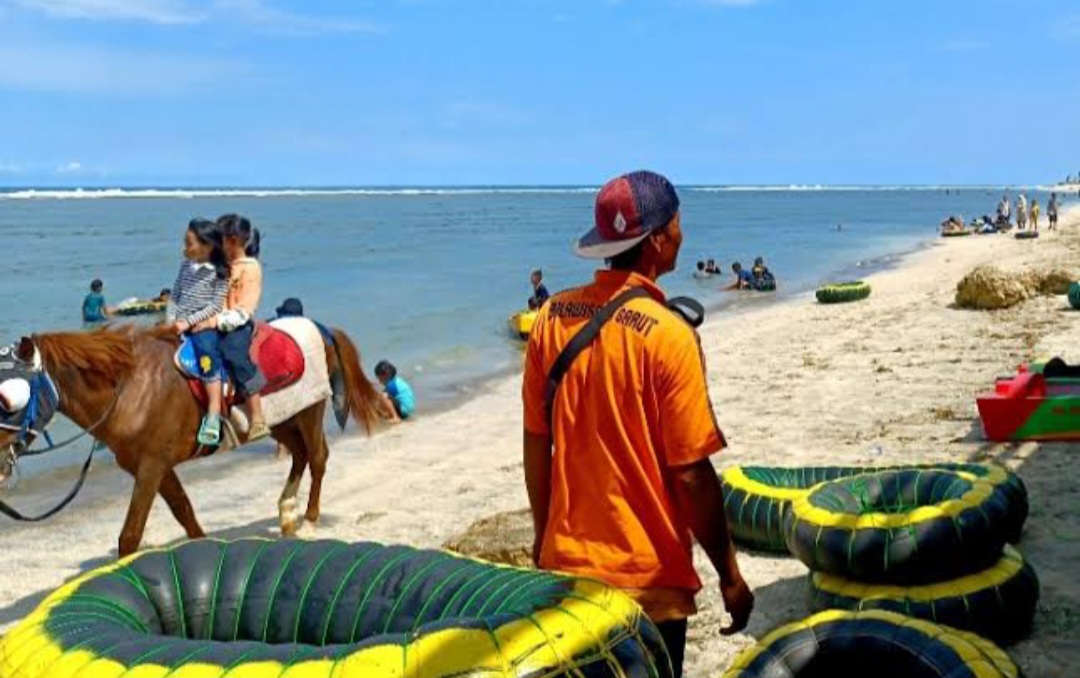 GOSIPGARUT.ID — Dinas Pariwisata dan Kebudayaan (Disparbud) Kabupaten Garut menyiagakan petugas Badan Penyelamat Wisata Tirta (Balawista) dibantu dengan petugas lainnya untuk melakukan pengamanan dan antisipasi bahaya di kawasan objek wisata pantai selama libur Lebaran.