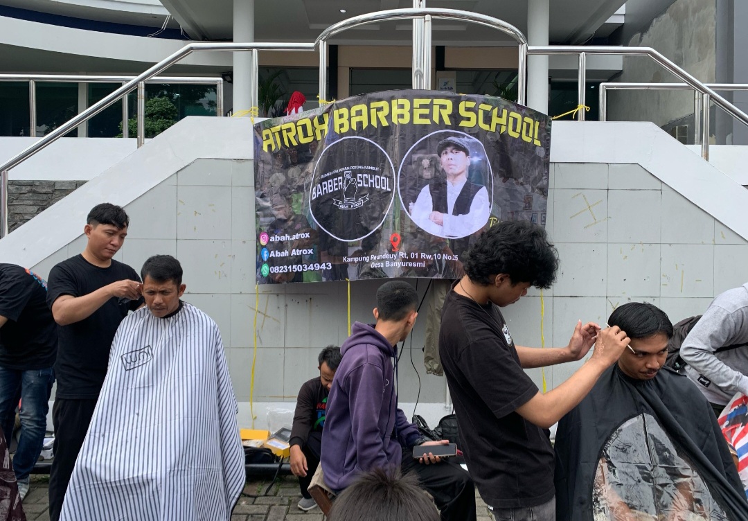 Abah Atrox mengatakan dalam kesempatan ini pihaknya membawa 14 kru dengan 10 di antaranya merupakan siswa Barber School Abah Atrox. Ia pun mengungkapkan jika masyarakat sangat antusias untuk memanfaatkan cukur gratis ini.