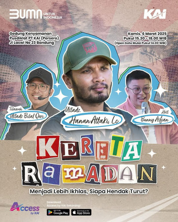 “KAI mengajak seluruh masyarakat untuk bergabung dalam Kereta Ramadan dan bersama-sama mengisi bulan suci dengan kegiatan yang penuh manfaat. Dengan menghadirkan narasumber yang inspiratif dan atmosfer Ramadan yang khas, acara ini diharapkan dapat memberikan pengalaman spiritual yang mendalam bagi pengguna Access by KAI,” tutup Anne.