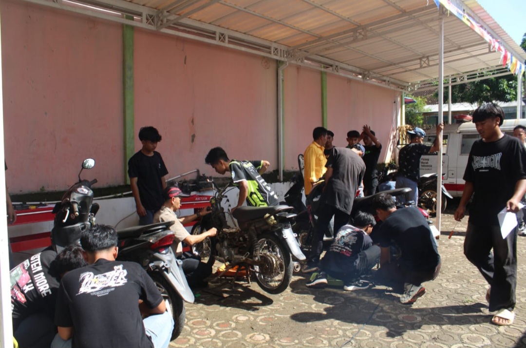 SMK Mekarmuti menggelar servis gratis sepeda motor untuk masyarakat umum, Sabtu (10/5/2025).