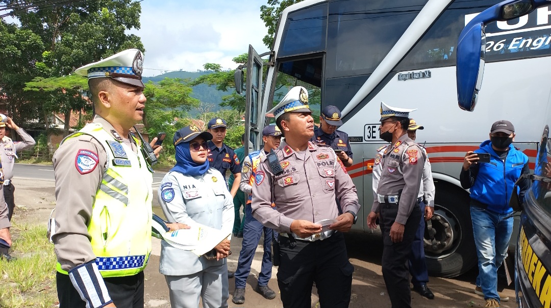 GOSIPGARUT.ID — Kepolisian Resor Garut bersama Dinas Perhubungan Kabupaten Garut melakukan pengecekan kelayakan kendaraan angkutan umum, pariwisata, dan barang di jalur nasional wilayah Limbangan, Kabupaten Garut, Sabtu (7/2/2026). Langkah ini dilakukan sebagai upaya pencegahan kecelakaan lalu lintas, sekaligus memastikan kendaraan yang beroperasi benar-benar laik jalan.